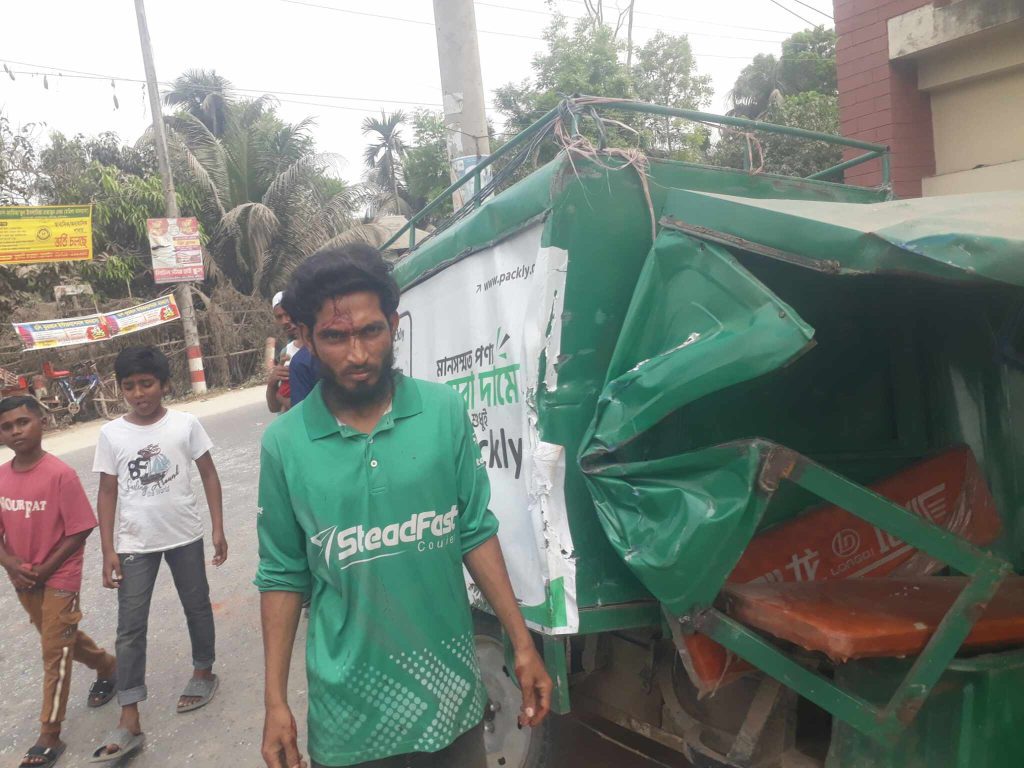 মুন্সীগঞ্জের শ্রীনগর উপজেলা ঢাকা দোহার সড়কে বাঘড়া ২ নং সরকারী প্রাথমিক বিদ্যালয় তালুকদার বাড়ি মোড়ে,১৫ মার্চ ২০২৬দুপুর ১:৩০ টায় ট্রাক ড্রাইভার ভুল পথ দিয়ে বেপরোয়া গতিতে ট্রাক চালিয়ে কুরিয়ার সার্ভিসের ভ্যানকে সজুড়ে ধাক্কা দিলে ভ্যানটি সামনের অংশ সামনের অংশ চূর্ণ-বিচূর্ণ হয়ে যায়এবং ডেলিভারি ম্যান খোকন গুরুতর আহত হন